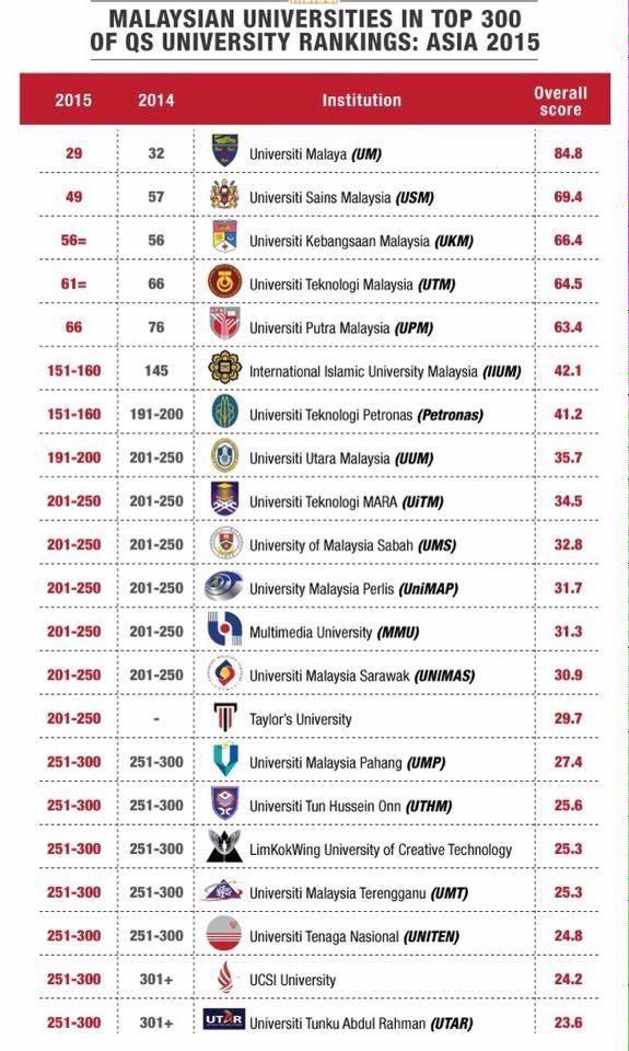 Setiap universiti ini juga ada prestasi yang berlainan.